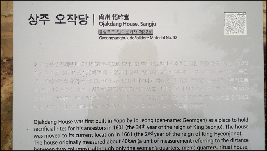 ▲ 상주 오작당은 상주시 낙동면 송곡리에 있는 조선 후기의 주택이며, 일명 구당이라고도 부른다. 검간(黔澗) 조정(趙靖)선생의 종가로 선조를 추모할 목적으로 지었다.